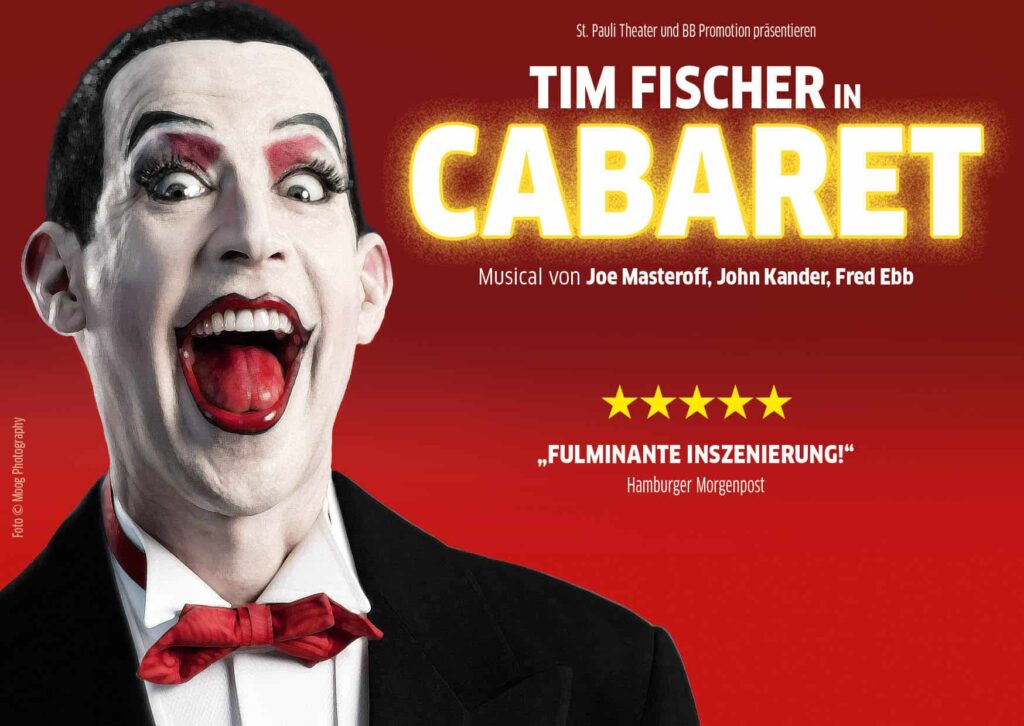 „Willkommen, Bienvenue, Welcome“ – mit diesen drei Worten taucht das Publikum ein in die aufreizende Welt von CABARET! Vor fast 60 Jahren startete das legendäre Musical vom Broadway aus seinen Siegeszug um die ganze Welt. Die Oscar-prämierte Verfilmung machte Liza Minelli zum Superstar! Hier im glitzernd-verruchten Kit Kat Club begrüßt ein dämonischer Conférencier seine Gäste und geleitet sie in eine vergnügungssüchtige Unterwelt. Es ist die Paraderolle für Deutschlands bekanntesten Chansonnier – Tim Fischer!